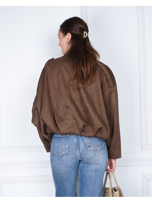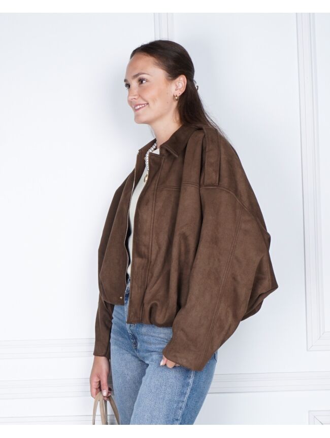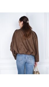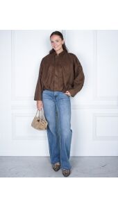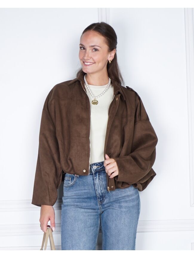 Dit suede bomber jasje met een hippe balloonfit is gemaakt van een dikkere, luxe stof. Gaaf dicht te dragen maar ook natuurlijk open met een fijn hemdje eronder. Combineer met een jeans en je bent ready for the day!