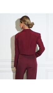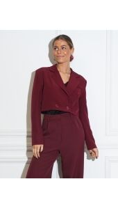 Upgrade je look met deze cropped blazer in een stijlvolle bordeauxrode tint. Gemaakt van 95% polyester en 5% elastaan, biedt deze blazer een perfecte mix van comfort en een luxe uitstraling. Ideaal om te dragen met een high-waist broek of pantalon voor een classy maar casual vibe. Bordeaux is altijd een goed idee!