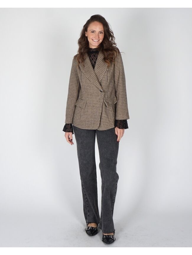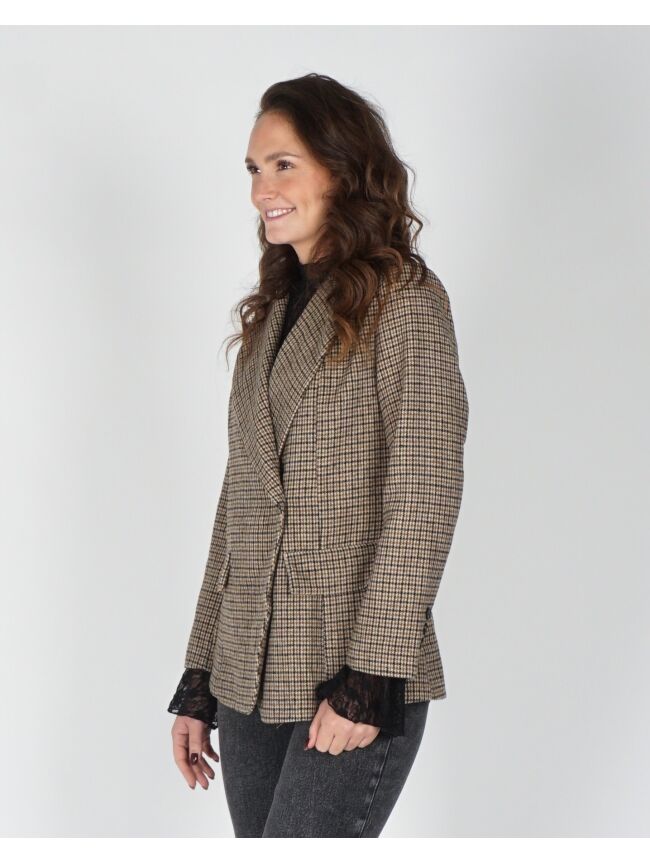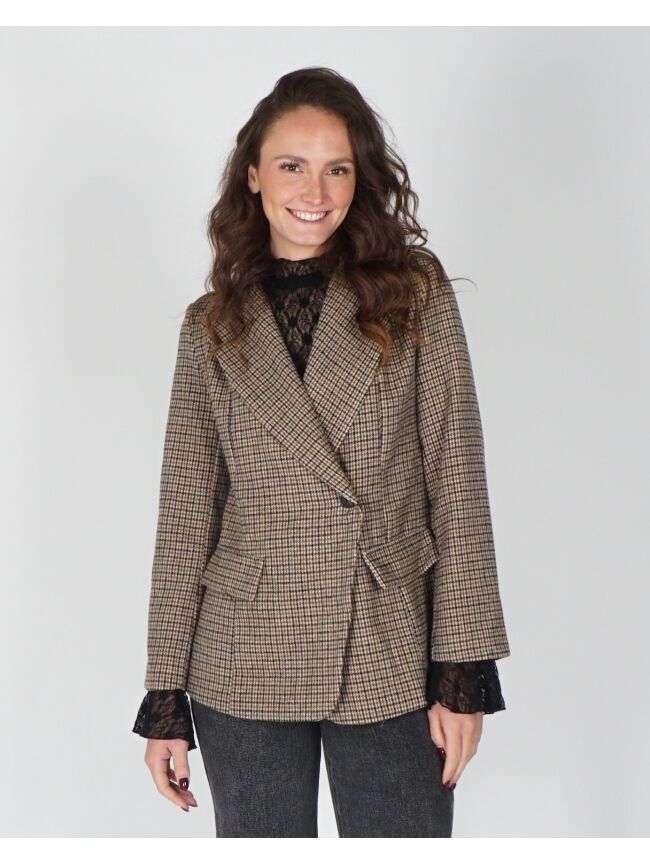 Onze luxe geruite blazer in camel is een echte wardrobe essential. De zachte stof en chique ruitprint geven je outfit direct een stijlvolle, high-end uitstraling. De camel kleur is tijdloos en makkelijk te combineren, of je ’m nu draagt over een basic top met jeans of boven een nette pantalon.