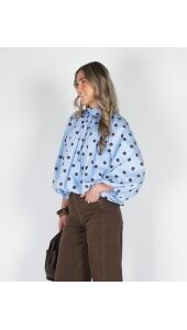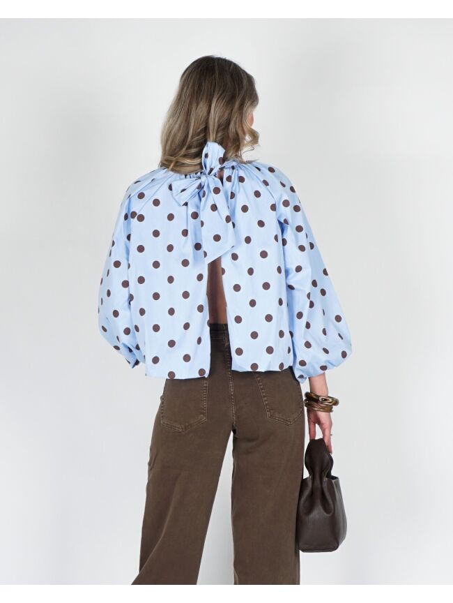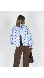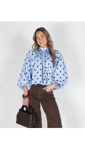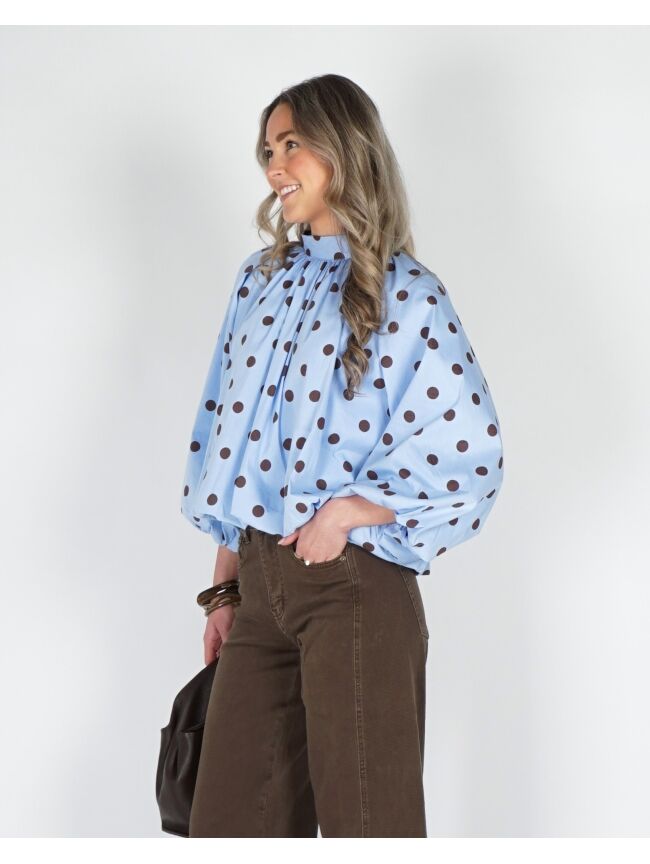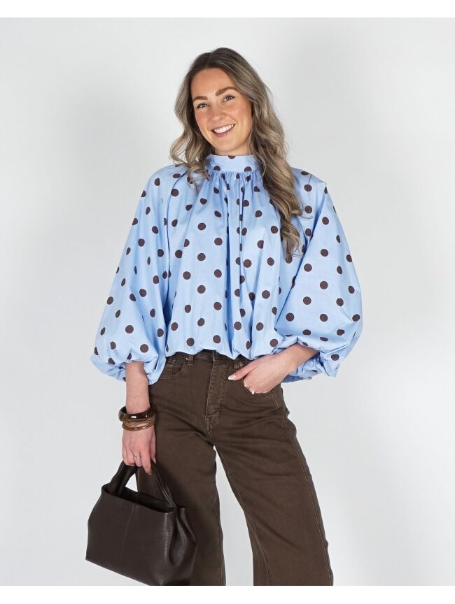 POLKA DOT BALLON BLOUSE BLAUW BRUIN