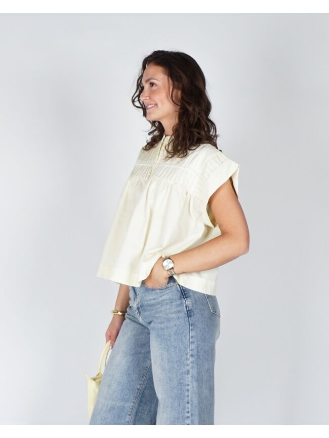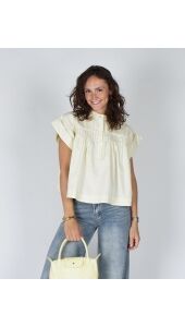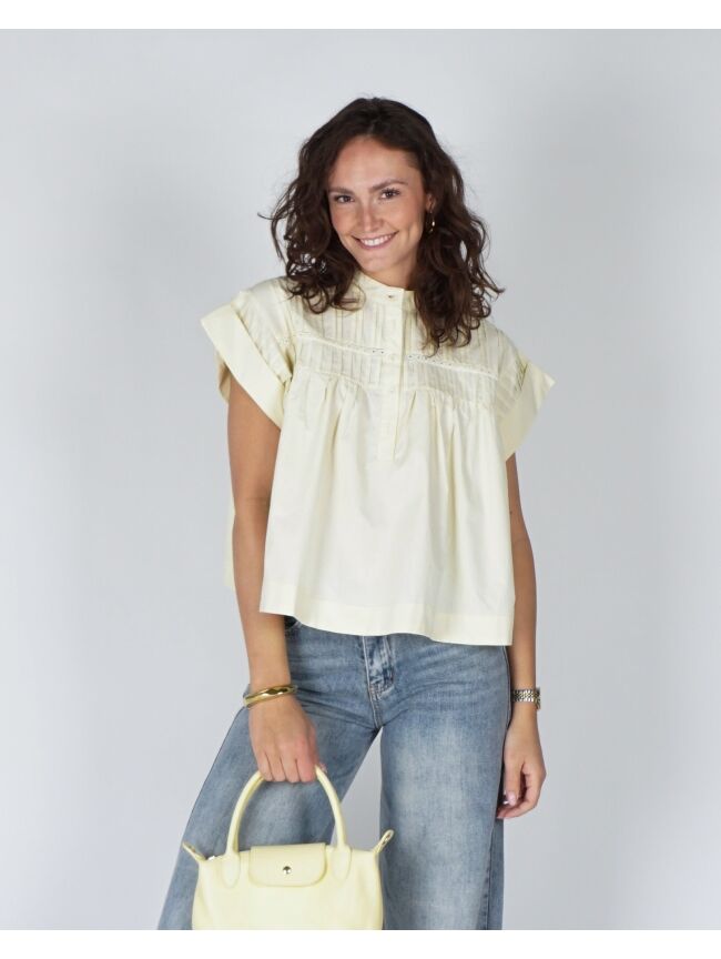 BLOUSE MET KORTE MOUW LICHTGEEL