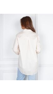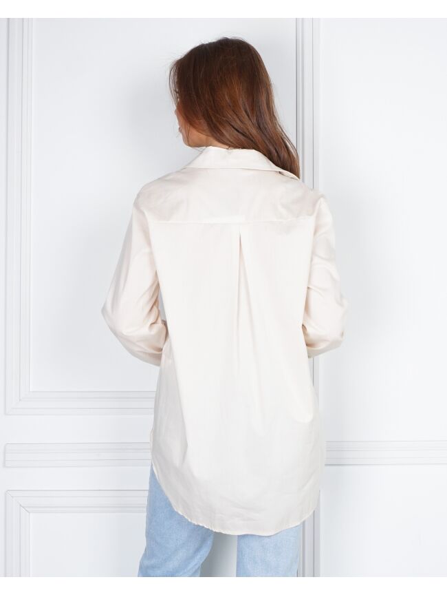 Deze nude blouse heeft een trendy oversized fit voor een effortless look. Gemaakt van een zachte stof voor ultiem comfort. Perfect om te stylen met je fave jeans of om up te dressen voor een chique vibe.