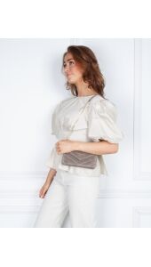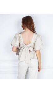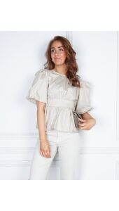 BLOUSE MET BALLONMOUW EN STRIK BEIGE