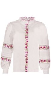 Deze mooie blouse heeft een chique uitstraling door de geborduurde details in het materiaal. Je kunt de blouse op eindeloos combineren, bijvoorbeeld met een gilet erover of juist op een mooie pantalon. Creëer de look die bij jou past! Shop snel dit kleding item en vergeet je favoriete sieraden niet!