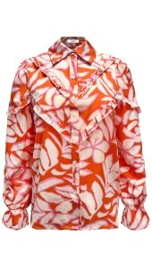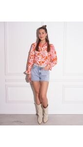 Ruches all over! Deze blouse is niet te missen in jouw wardrobe. De blouse heeft een mooie print, ruches all over en elastiek bij de mouwtjes. Stijl de blouse met het rokje Emilie voor een prachtige co-ord set.