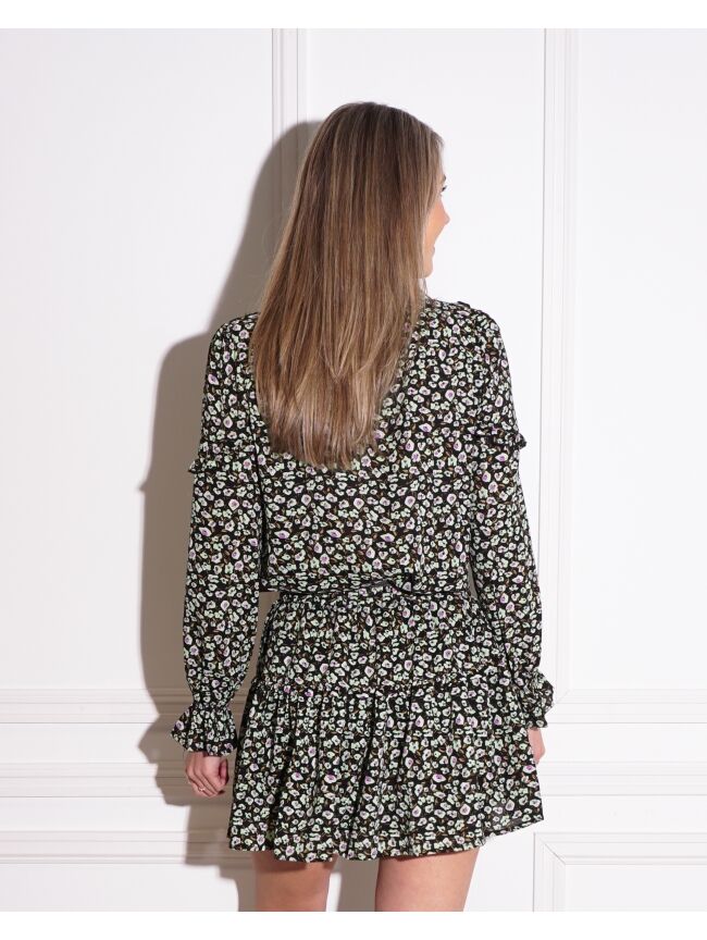 Ruches all over! Deze blouse is niet te missen in jouw wardrobe. De blouse heeft een mooie print, ruches all over en elastiek bij de mouwtjes. Stijl de blouse met het rokje Emilie voor een prachtige co-ord set.