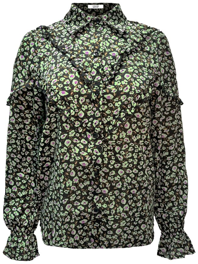 PRINT BLOUSE RUCHES GROEN