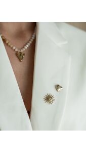 Deze prachtige golden hart broche brengt een vleugje liefde naar je look. Het gedetailleerde ontwerp van de hart straalt warmte en liefde uit, terwijl het gouden materiaal een elegante uitstraling geeft. Perfect om je outfit een speelse en stijlvolle touch te geven.