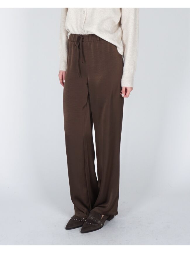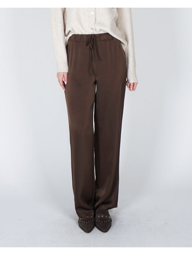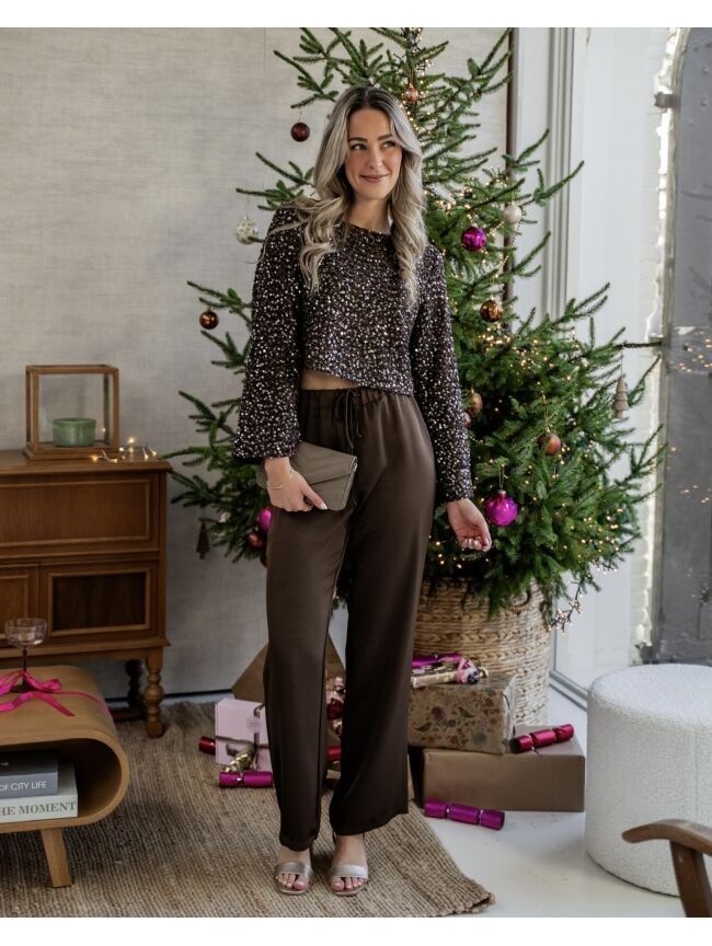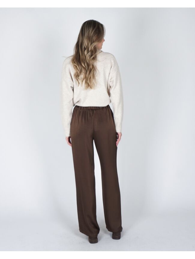 Deze satijnen broek is een musthave voor in jouw kast! Combineer voor de feestdagen met een gave pailletten top en draag 'm everyday met een warme knit. Verkrijgbaar in bruin en zwart.
