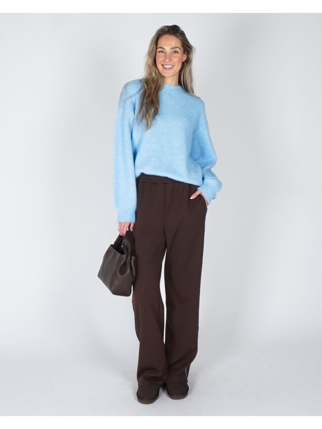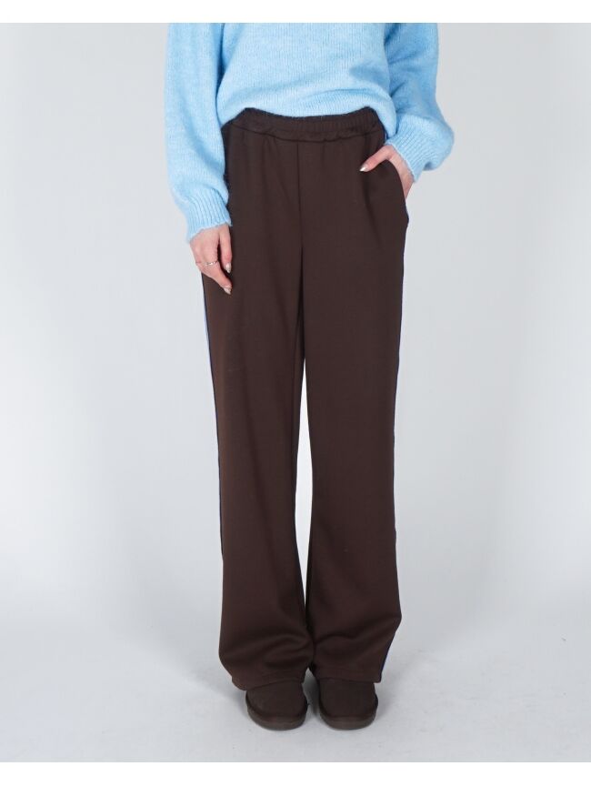 Deze comfortabele broek is een perfecte mix van stijl en draagcomfort. De broek heeft een relaxed fit en is gemaakt van een superzachte stof die heerlijk aanvoelt op de huid. De subtiele blauwe bies langs de zijkant geeft de broek een sportieve en moderne uitstraling. Een fijne musthave voor een comfortabele, maar trendy look.