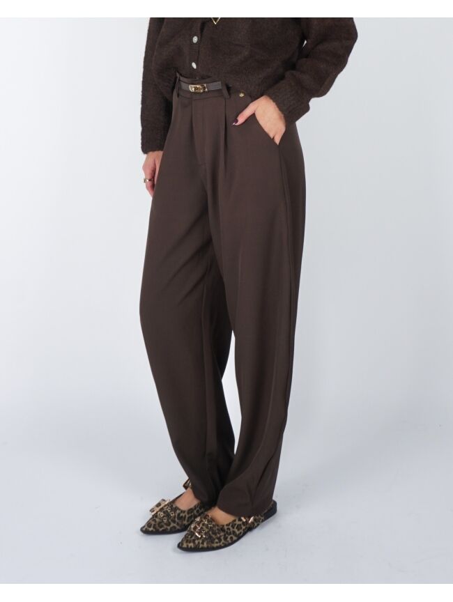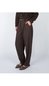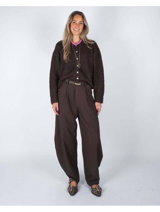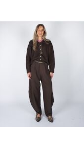 De Ballon Pantalon Nina in bruin is een perfecte mix van comfort en stijl. Met haar losse, afgeronde pasvorm en zachte stof biedt deze broek een nonchalante maar toch verfijnde look. De subtiele plooien en ballonvorm geven een speelse twist, terwijl de warme bruintint moeiteloos te combineren is met zowel basics als opvallende bovenstukken.
