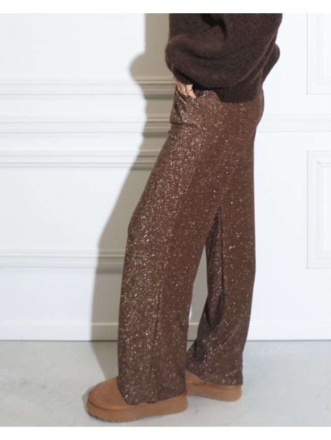 Deze glitter pantalon is alles wat je nodig hebt om te stralen. Met zijn comfortabele fit en sprankelende vibes is dit de perfecte broek voor een feestje of gewoon een extra glam touch aan je dagelijkse look.
