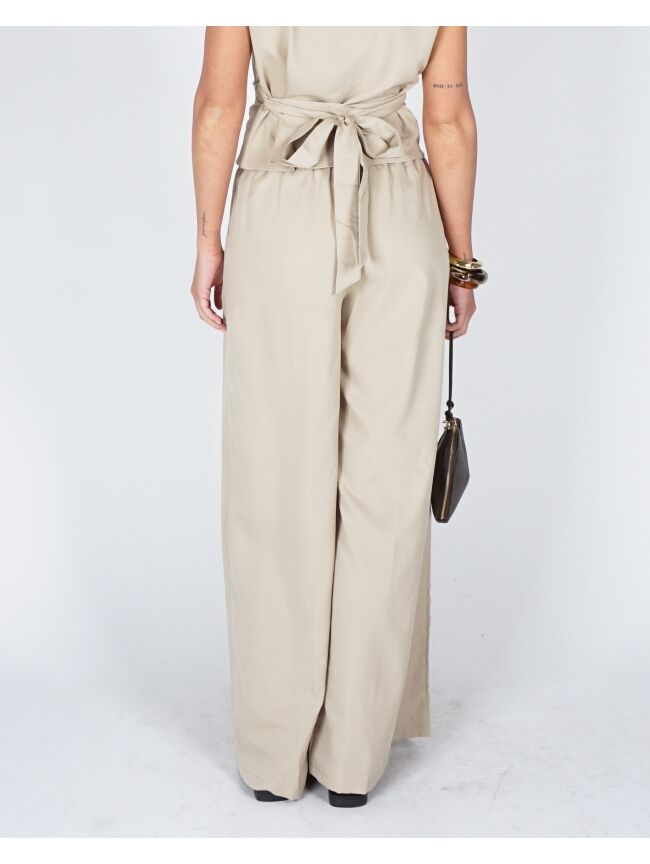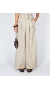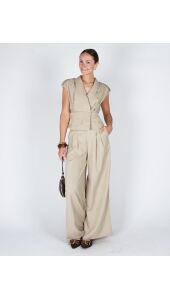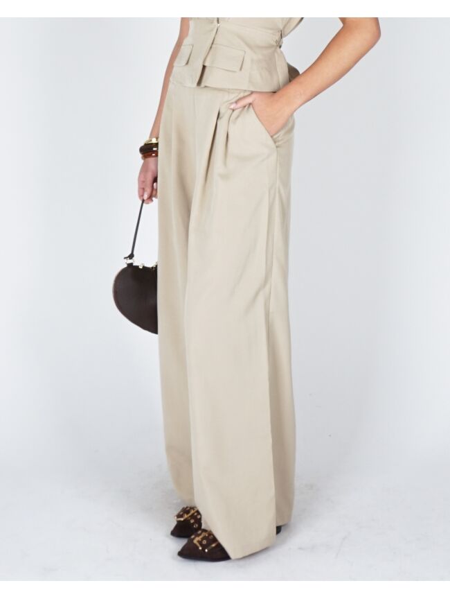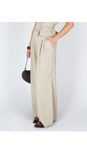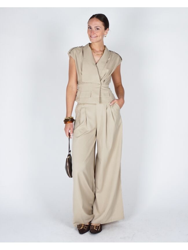 Deze beige pantalon is een tijdloze basic met een stijlvolle en comfortabele fit. De soepelvallende stof en rechte pijpen zorgen voor een elegante uitstraling. Perfect te combineren met de bijpassende gilet of een top voor een complete look.