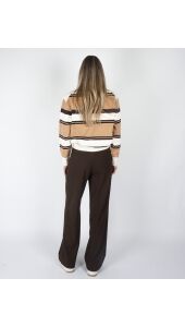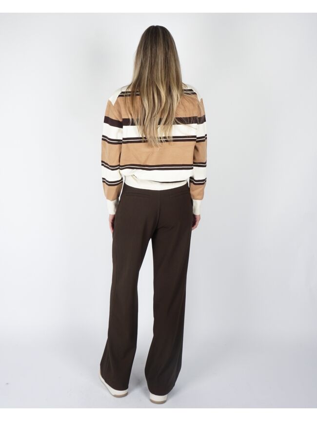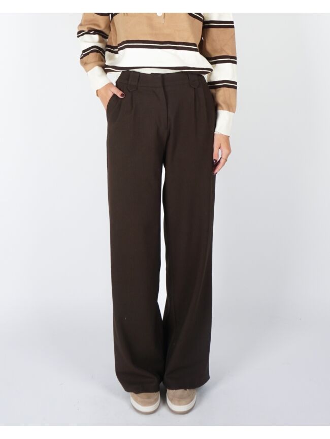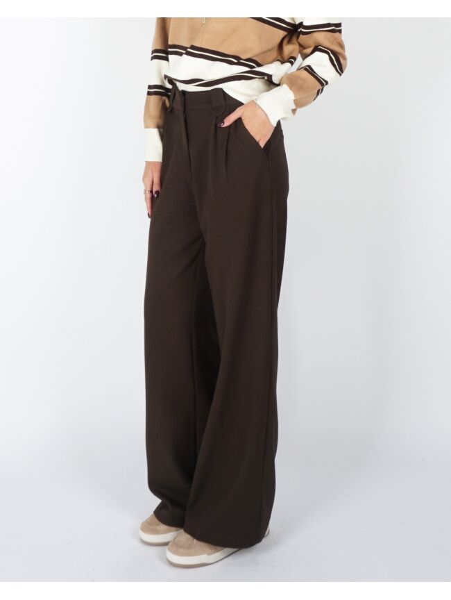 Deze bruinkleurige wide leg pantalon straalt moeiteloze elegantie uit. De wijde pijpen geven de broek een moderne, flatterende look. Gemaakt van een comfortabele stof die mooi valt. Perfect voor zowel casual als geklede momenten. Een onmisbaar item voor een stijlvolle, eigentijdse outfit.