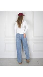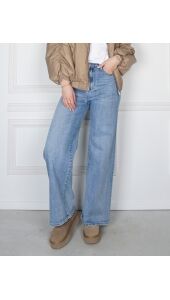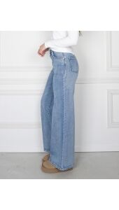 Deze denim jeans met hoge taille heeft wijde pijpen voor een trendy en comfortabele look. Voorzien van klassieke 5-pocketdetails en een subtiele lichtblauwe wassing die de jeans een mooie uitstraling geeft. De stevige denimstof en perfecte pasvorm maken deze broek ideaal voor zowel casual als chique combinaties. Perfect te stylen met een blouse of T-shirt voor een eigentijdse outfit.