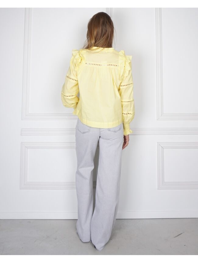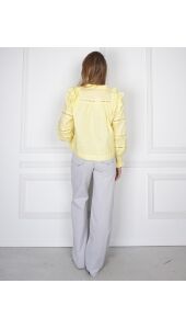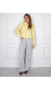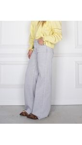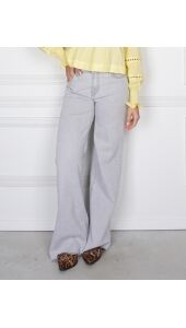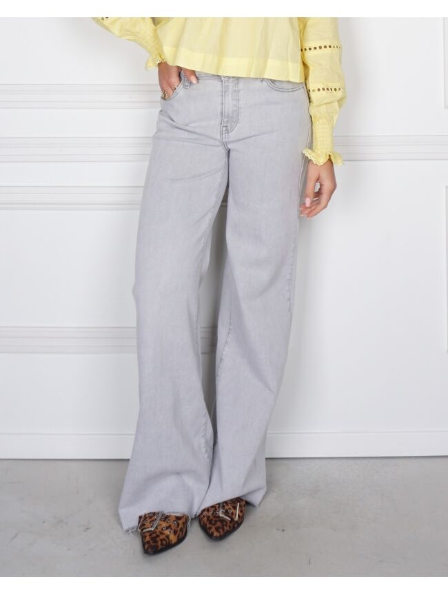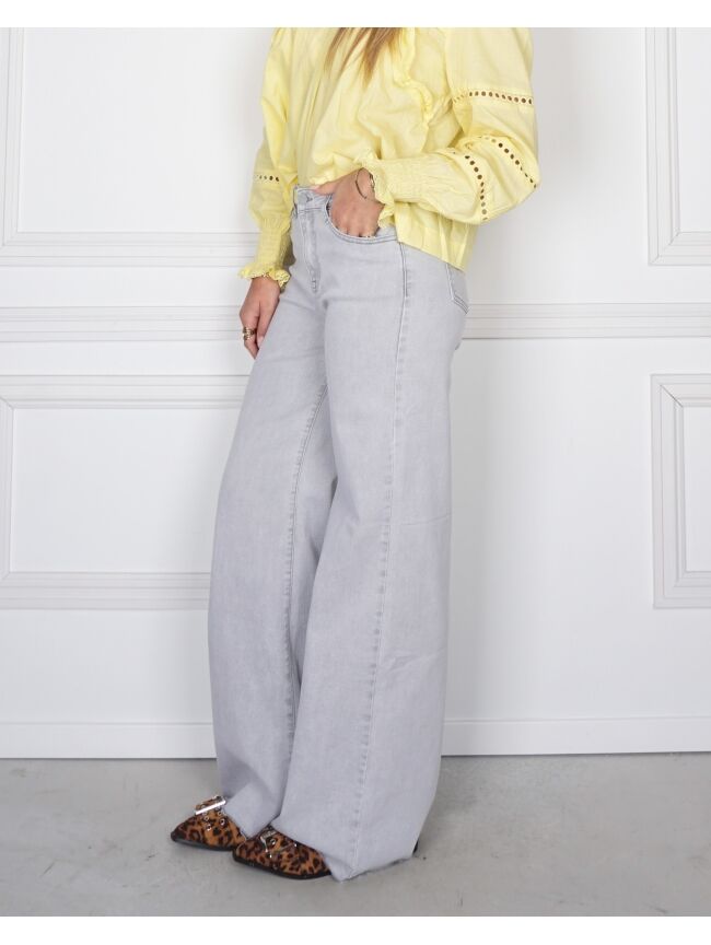 Deze midwaist denim jeans heeft wijde pijpen voor een trendy en comfortabele look. Voorzien van klassieke 5-pocketdetails en een subtiele lichtgrijze wassing die de jeans een mooie uitstraling geeft. De stevige denimstof en perfecte pasvorm maken deze broek ideaal voor zowel casual als chique combinaties. Perfect te stylen met een blouse of T-shirt voor een everyday outfit.