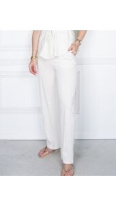 Deze beige pantalon is gemaakt van 70% viscose en 30% linnen, wat zorgt voor een luchtige, natuurlijke feel met een elegante uitstraling. De soepele stof en neutrale kleur maken ‘m perfect voor zowel casual als geklede looks. Een echte garderobe-essential!
