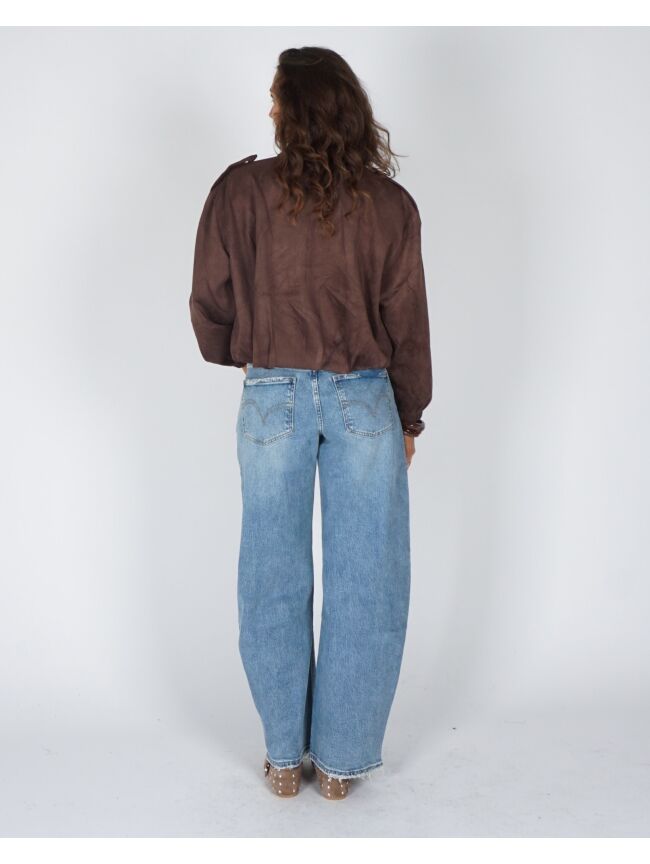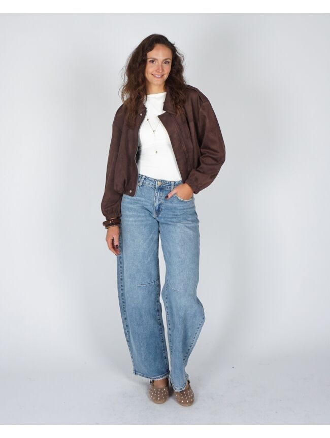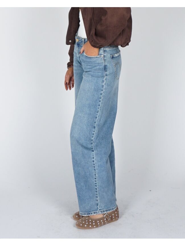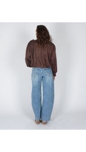 Trend alert! Deze barrel fit jeans mag dit seizoen niet ontbreken in jouw garderobe. De jeans heeft een blauwe wassing, valt low/mid waist en bevat een beetje stretch. Combineer met jouw favoriete top!