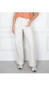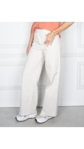 Deze wide leg jeans heeft een beige wassing en high-waisted fit. De straight fit en schuine knoop detail geven een coole twist aan dit tijdloze design. De katoenen kwaliteit zorgt voor een perfecte pasvorm.