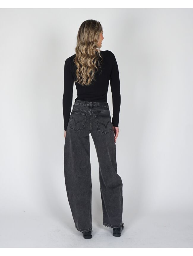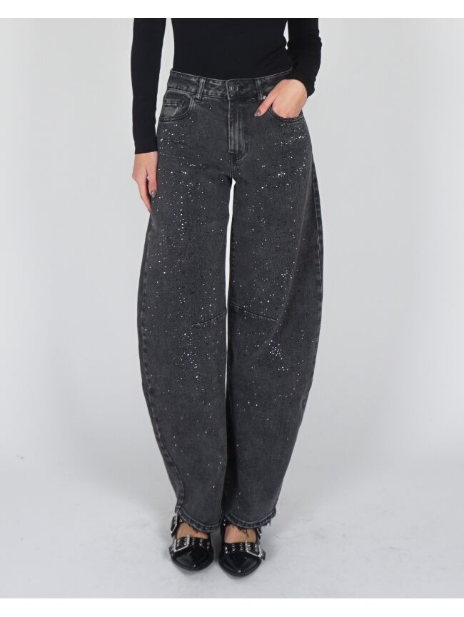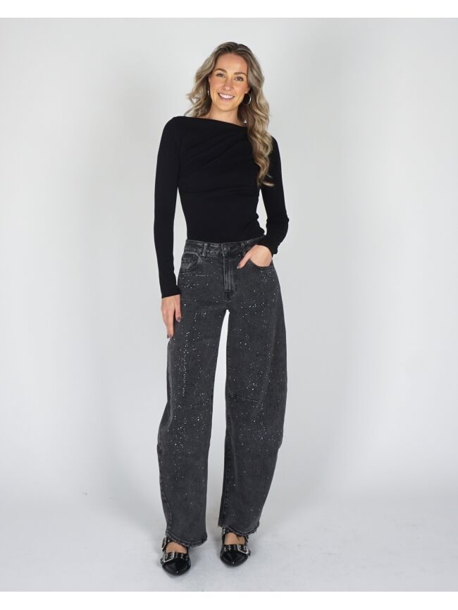 Deze barrel jeans met strass is jouw nieuwe statement piece. De losse, taps toelopende pasvorm zit heerlijk en de subtiele strass-details zorgen voor een sprankelende touch. Stoer én vrouwelijk in één!