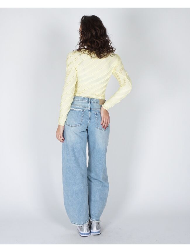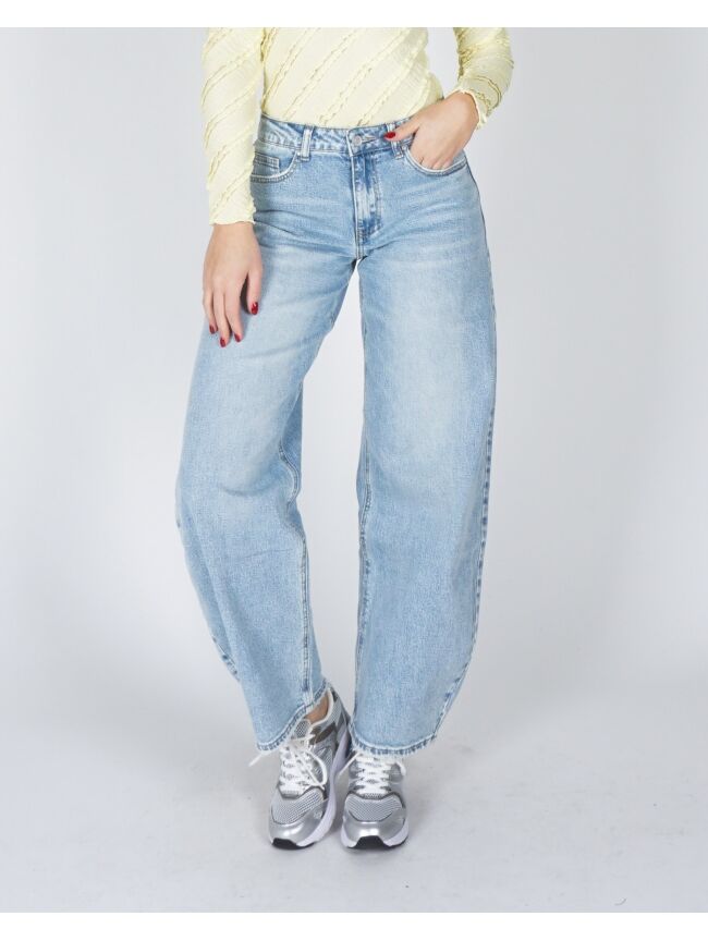 Deze lichtblauwe balloon jeans is jouw nieuwe everyday essential. Met een losse fit en stevige stof geeft ‘ie meteen die laid-back, cool girl vibe. De lichtere denim kleur maakt ‘m perfect voor veel verschillende looks. Helemaal ready voor najaar maar ook easy te combineren met frisse kleuren.