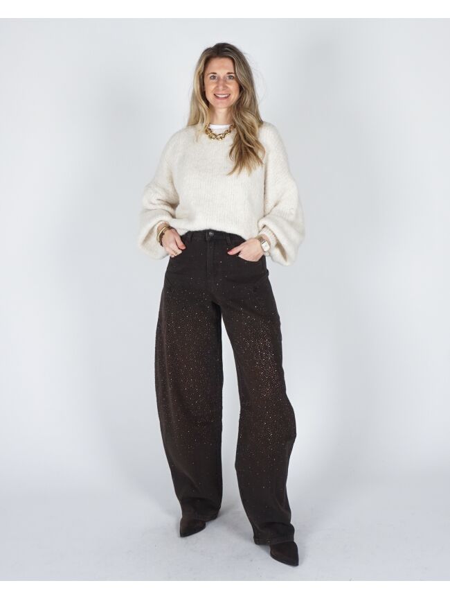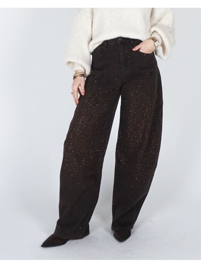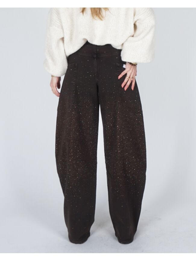 Trend alert! Deze barrel fit jeans met strass details is dé eyecatcher van dit seizoen. Deze broek geeft een trendy look, terwijl de barrel fit comfortabel en modern valt. De jeans zit low/mid waist en bevat een beetje stretch voor de perfecte fit. Combineer met jouw favoriete top en shine away!