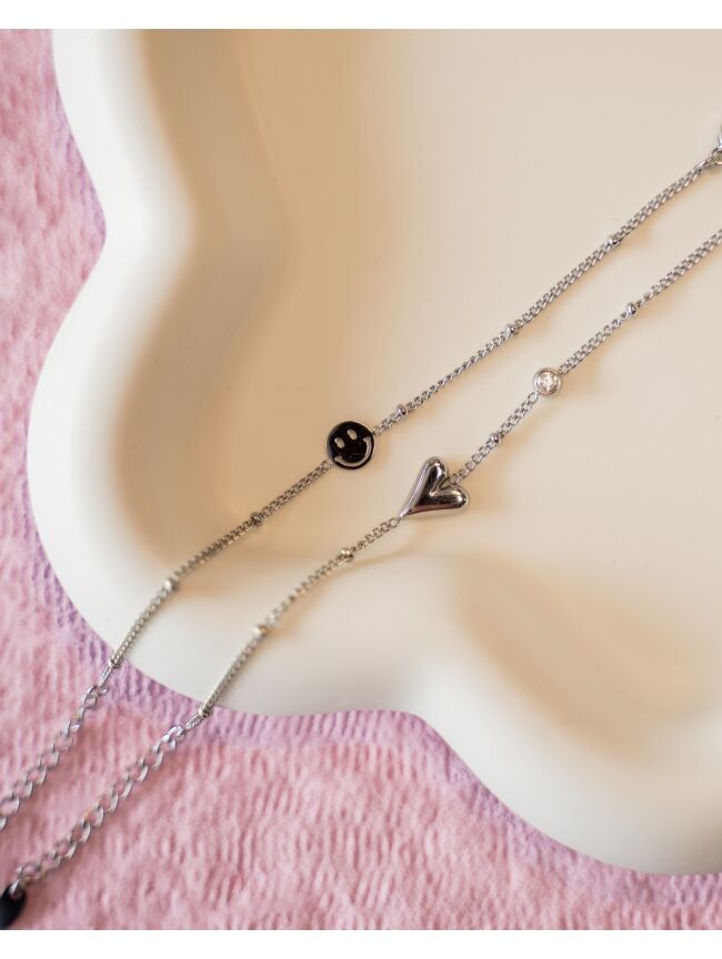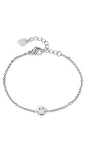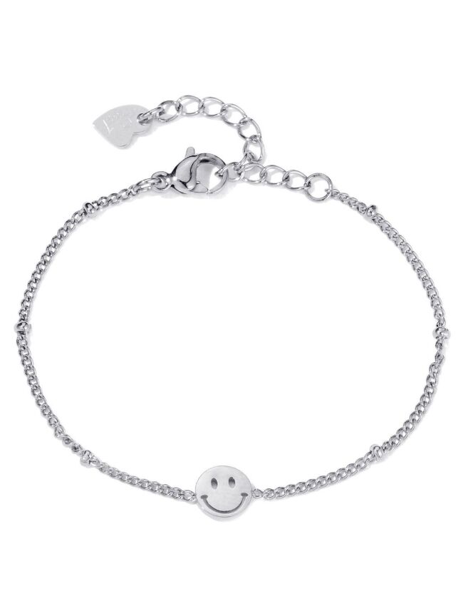 Breng een glimlach met je mee! Deze zilverkleurige armband met een vrolijke smiley is perfect voor kleine meiden die houden van een speels en lief detail.