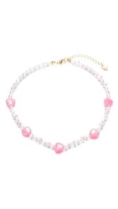 Een frisse ketting met klassieke parels en meerdere roze hartjes als vrolijke details. Perfect voor meisjes die houden van een speels en kleurrijk sieraad met een stoere touch!