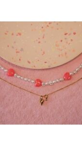 MEISJES KETTING PARELS EN HARTJE ROZE