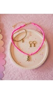 MEISJESKETTING KRALEN EN BEERTJE ROZE