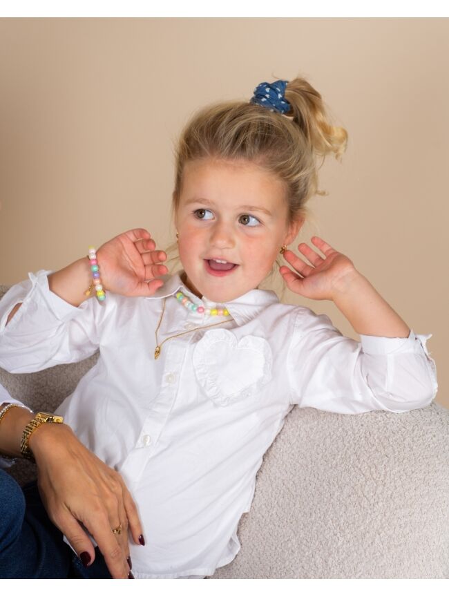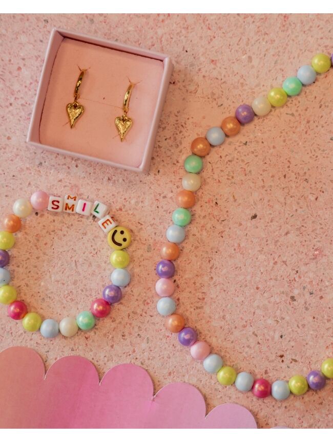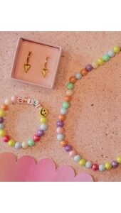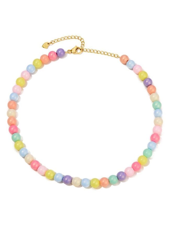 Een vrolijke ketting vol kleur! Deze multi kleurige ketting met grove kralen brengt direct een gezellige, speelse sfeer. Perfect voor kinderen die houden van kleur en plezier in hun outfit. De ketting is licht om te dragen en stevig genoeg voor elke dag.