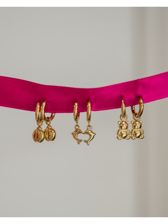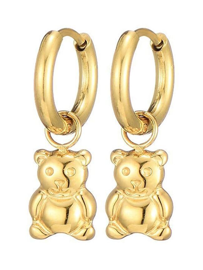 Deze beertjes brengen meteen een glimlach! De goudkleurige oorbellen zijn speels en vrolijk, perfect voor kinderen die houden van een leuk detail bij hun outfit. Ze zitten comfortabel en zijn leuk te combineren met andere sieraden uit onze collectie.
