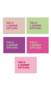 Op zoek naar het ideale cadeautje? Shop dan nu de Gossip Giftcard! Wat ons betreft perfect voor je BFF, moeder, nichtje of collega. Als kers op de taart doen wij doen er ook nog eens een hele mooie cadeauverpakking bij. Niks meer aan doen dus! Heb je vragen over de Gossip Giftcard of wil je grotere aantallen bestellen? Neem contact op met onze klantenservice. Zij staan klaar om je vragen te beantwoorden! Geef in het opmerkingenveld aan als je een voorkeur hebt van giftcard kleur of een persoonlijke boodschap wilt toevoegen!