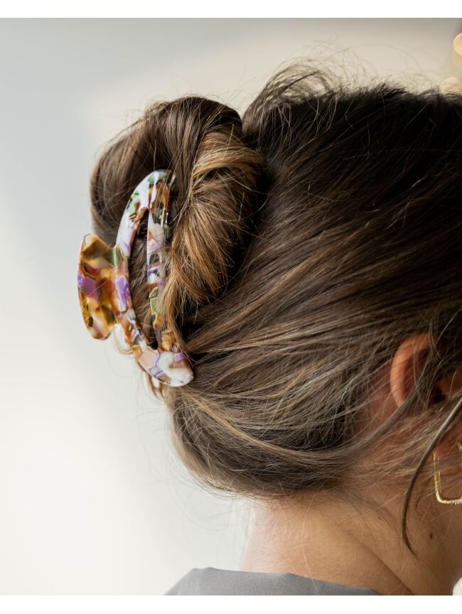 Shop deze ideale haarklem met ronde vorm nu! De haarklem is perfect om jouw haren of een gedeelte ervan op een leuke manier op te steken. Daarnaast is de haarklem eenvoudig op te bergen in of aan jouw tas!