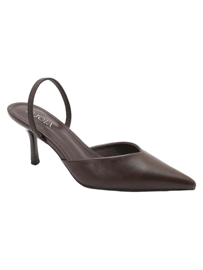 Deze elegante hak in het bruin heeft een tijdloze en vrouwelijke uitstraling. De spitse neus en subtiele hak geven de schoen een chique touch. Perfect te combineren met een jurk, pantalon of jeans voor een stijlvolle look.