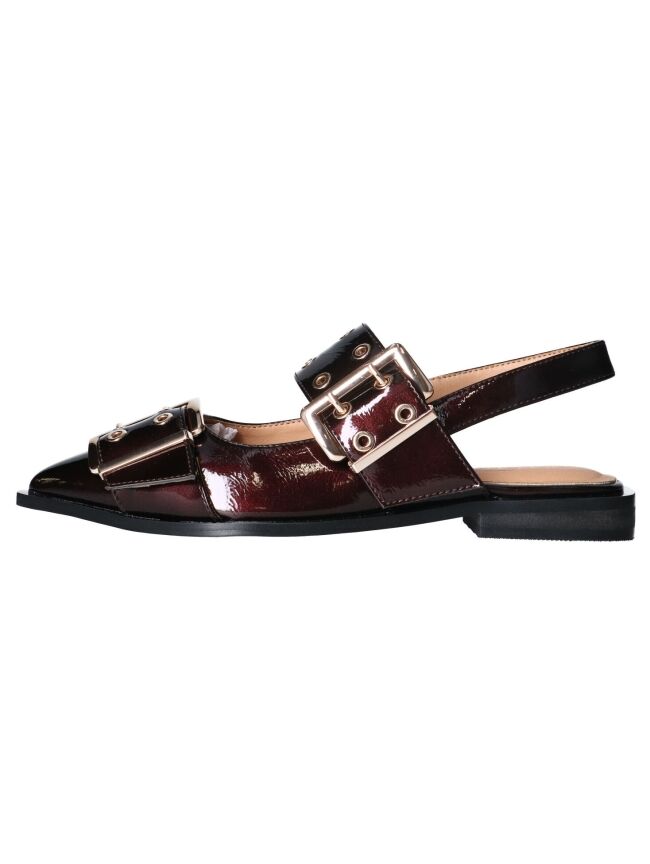 Stap stijlvol de dag in met deze geweldige slingback, een perfecte mix van elegantie en modern design. Geïnspireerd door high-end designerlook. De verfijnde slingback-pasvorm zorgt voor een subtiele, vrouwelijke uitstraling, terwijl de opvallende gespen op de bovenkant een edgy touch toevoegen. Draag ze met een suit voor een sophisticated look. Een statement-piece dat je moeiteloos van dag naar nacht brengt.