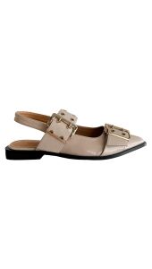 Stap stijlvol de dag in met deze geweldige slingback, een perfecte mix van elegantie en modern design. Geïnspireerd door high-end designerlook. De verfijnde slingback-pasvorm zorgt voor een subtiele, vrouwelijke uitstraling, terwijl de opvallende gespen op de bovenkant een edgy touch toevoegen. Draag ze met een suit voor een sophisticated look. Een statement-piece dat je moeiteloos van dag naar nacht brengt.