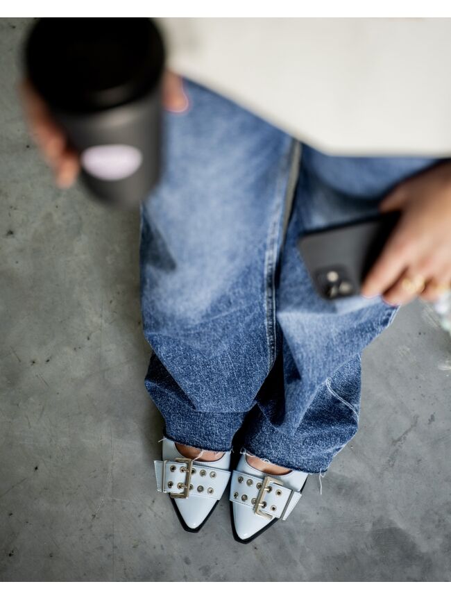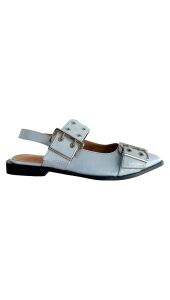 Stap stijlvol de dag in met deze geweldige slingback, een perfecte mix van elegantie en modern design. Geïnspireerd door high-end designerlook. De verfijnde slingback-pasvorm zorgt voor een subtiele, vrouwelijke uitstraling, terwijl de opvallende gespen op de bovenkant een edgy touch toevoegen. Draag ze met een suit voor een sophisticated look. Een statement-piece dat je moeiteloos van dag naar nacht brengt.