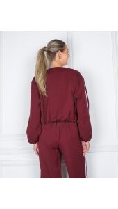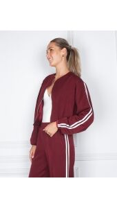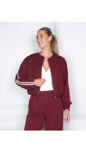 Dit bordeaux bomberjasje met subtiele biesdetails is een stijlvolle must-have voor het nieuwe seizoen. De sportieve bies geeft het jasje net dat beetje extra flair, zonder in te leveren op comfort. Extra leuk: er is een bijpassende broek met dezelfde bies, voor een complete en trendy co-ord set. Perfect voor een casual-chique look die moeiteloos in elkaar overloopt.