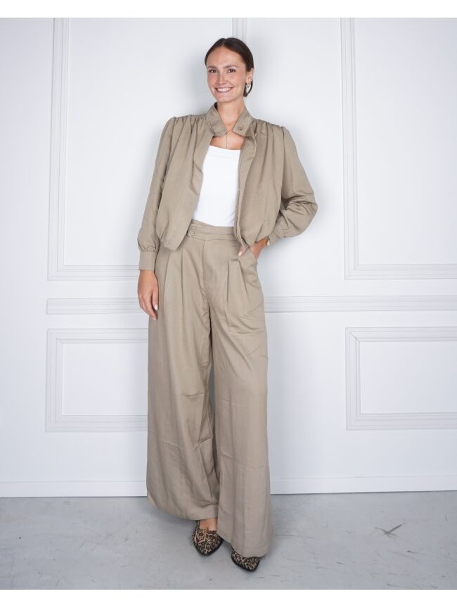 Dit groene jasje met mooie plooien is gemaakt van een dikkere, luxe stof. Gaaf dicht te dragen maar ook natuurlijk open met een fijn hemdje eronder. Combineer met de bijpassende broek en je bent ready for the day!