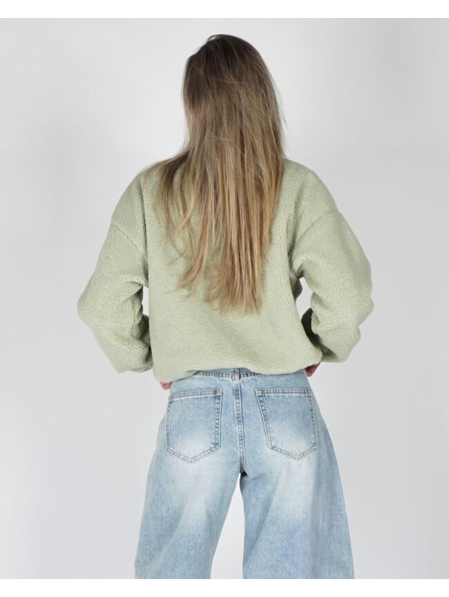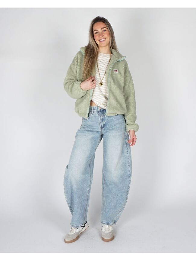 De oversized teddy bomber in groen is een echte eyecatcher met een stoere uitstraling. De zachte teddy stof draagt comfortabel en voelt heerlijk aan. Makkelijk te combineren met een jeans of pantalon voor een trendy look.