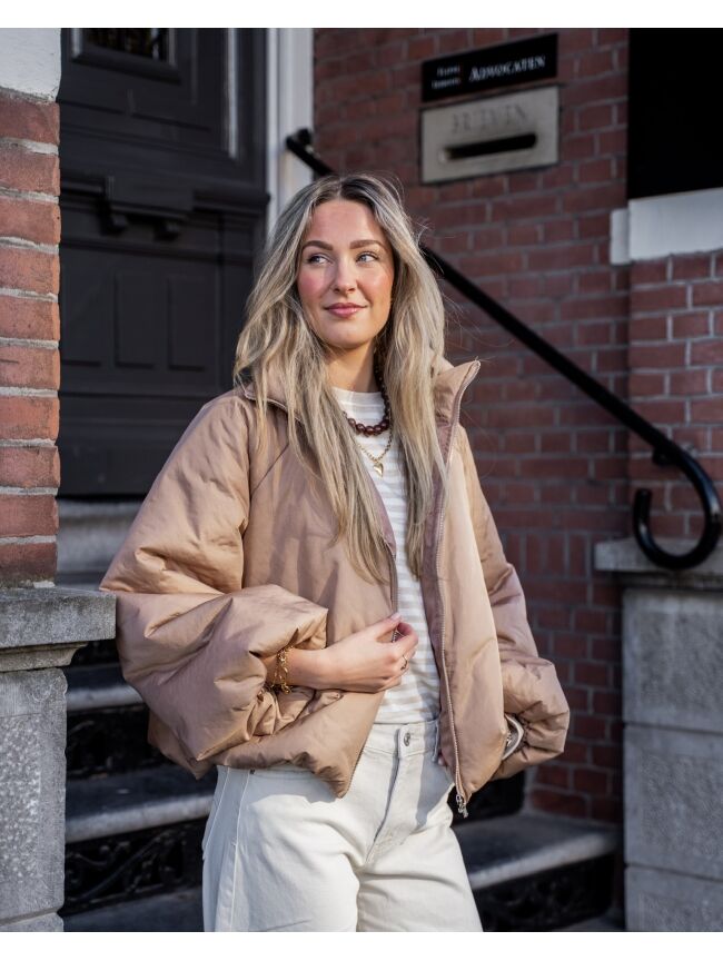 De puffer jas in camel is een stijlvol item met een tijdloze uitstraling. De jas draagt comfortabel en is perfect voor het tussenseizoen. Makkelijk te combineren met zowel een casual als geklede outfit.