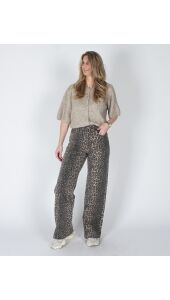We love a good print! Tijd om te shinen met deze denim jeans met panterprint. Printjes zijn helemaal hip & panterprint al helemaal, met deze broek met je dus altijd on-trend. Draag deze broek samen met een leuke trui of T-shirt voor een mooie stijlvolle look. Wil je er een iets nettere look van maken? Combineer deze wijde broek dan met een mooie blazer. Vergeet voor je de deur uit gaat je look niet af te stijlen met je favo sieraden. Time to shine babe!