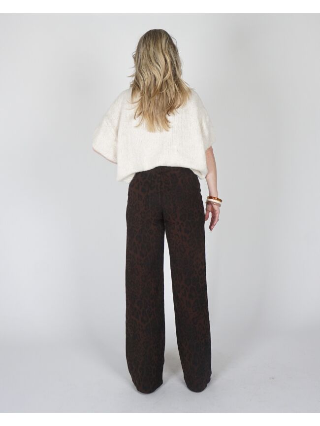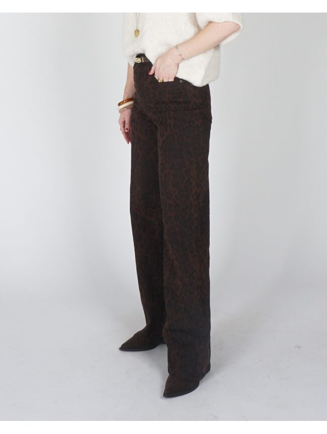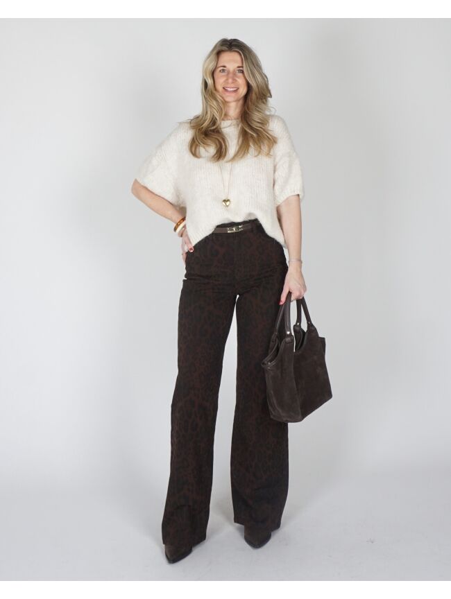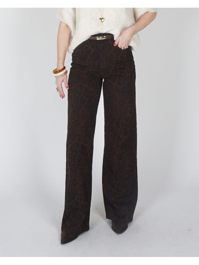 De Leopard Jeans Bruin Zwart is een echte eyecatcher met een trendy leopard print. Net een tintje donkerder dan onze all time bestseller: de leopard jeans in het bruin beige! De stoere denim look geeft elke outfit direct een coole en fashionable vibe. Dankzij de stretchy pasvorm zit de jeans comfortabel en is hij perfect voor dagelijks gebruik. Combineer deze jeans met een basic top zoals onze TRUI JILL voor een complete look.