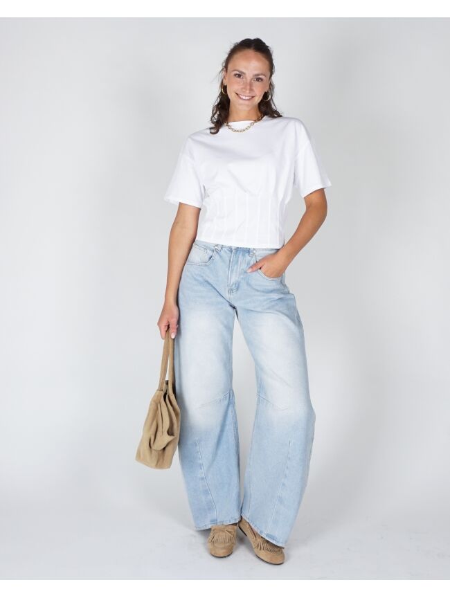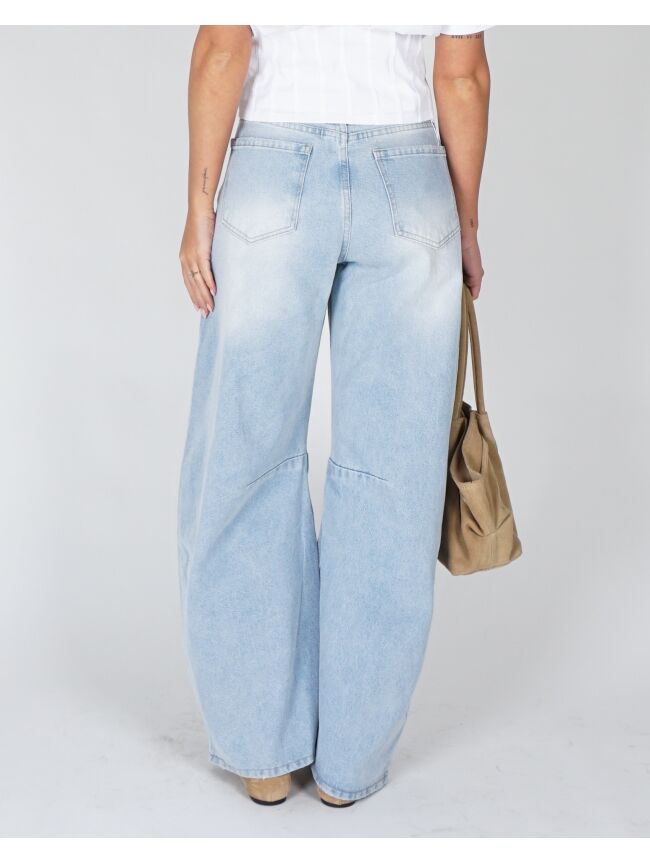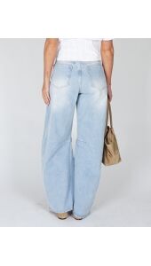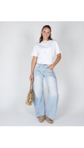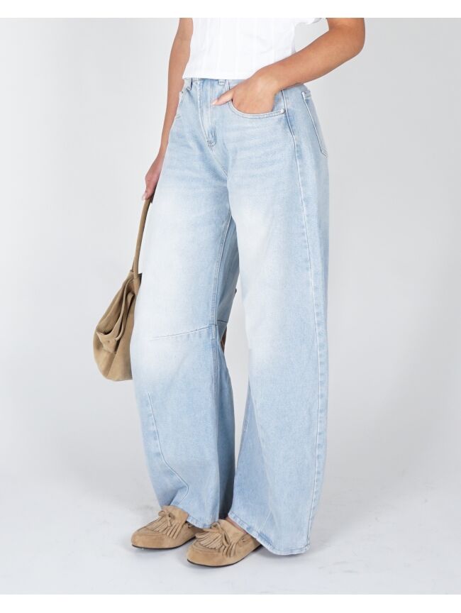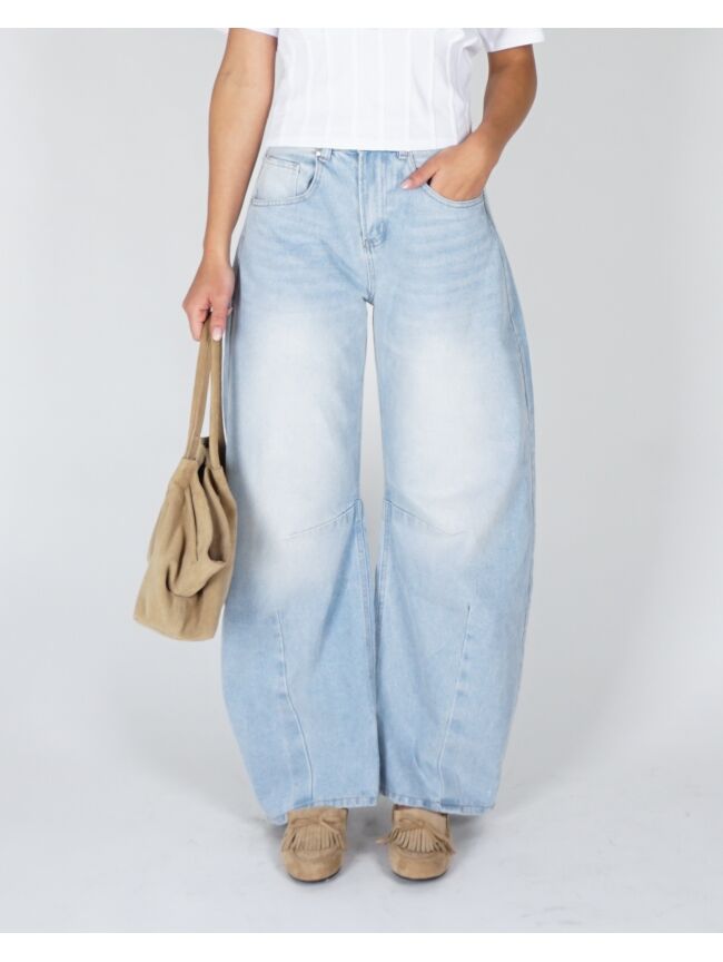 Balloon fit jeans in een lichte wassing. De hoge taille en ronde, volumineuze pijpen geven een relaxed maar uitgesproken silhouet. Stoer en effortless in één.