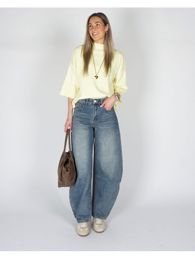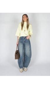 De medium blauwe balloon jeans heeft een losse pasvorm en een frisse uitstraling. De jeans zit comfortabel en valt mooi door de vorm van de pijpen. Makkelijk te combineren met een basic top, trui of blouse