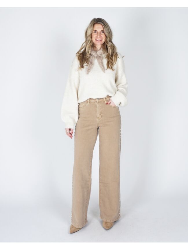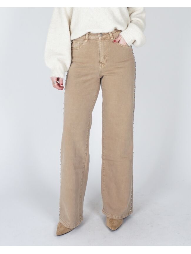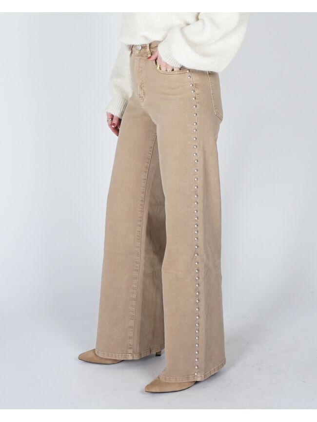 WIDE LEG JEANS MET STUDS BEIGE