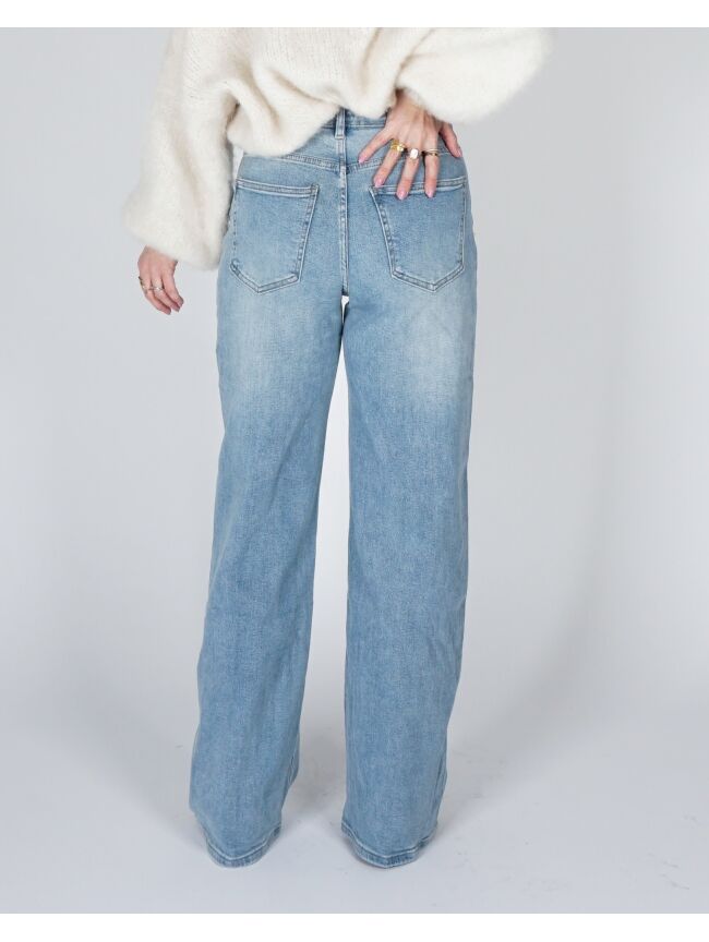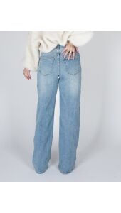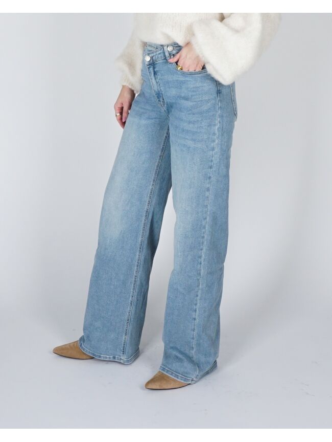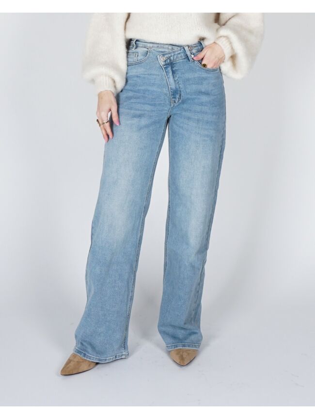 WIDE LEG JEANS SCHUINE KNOOP BLAUW