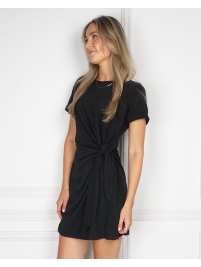Dit is zo'n makkelijk jurkje! Hij zit lekker en je kunt hem eindeloos combineren. Zo'n jurkje die je elke dag aan wilt! Effen van kleur, een leuk knoop-detail en de perfecte lengte. MUSTHAVE!