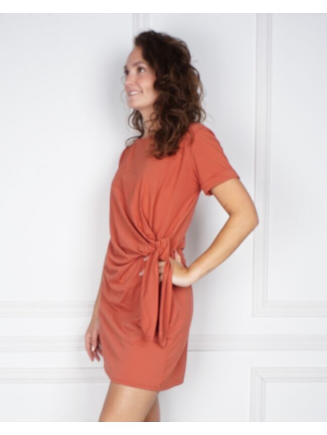 Dit is zo'n makkelijk jurkje! Hij zit lekker en je kunt hem eindeloos combineren. Zo'n jurkje die je elke dag aan wilt! Effen van kleur, een leuk knoop-detail en de perfecte lengte. MUSTHAVE!